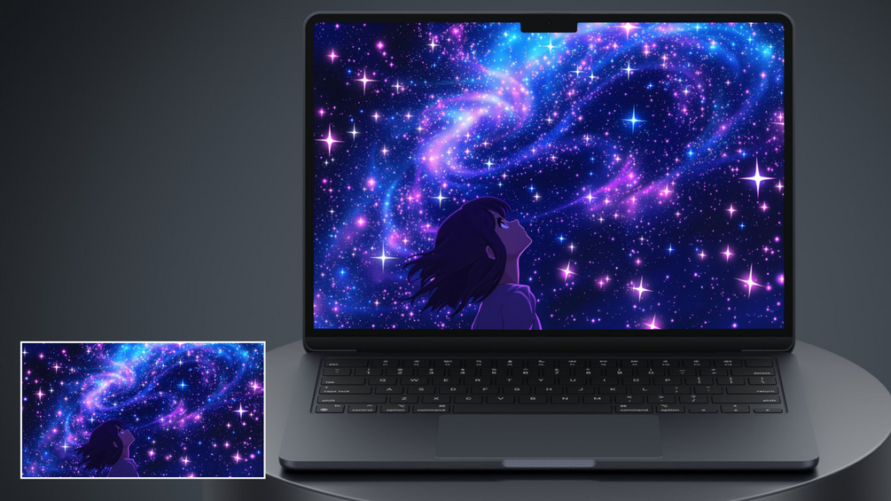 This enchanting artwork shows an anime girl gazing up at a spectacular cosmic display of stars and nebulae in vibrant pinks, purples, and blues. The swirling galaxy and twinkling stars create a magical atmosphere that captures the wonder of stargazing and infinite possibilities. Perfect for dreamers, star-lovers and anyone looking to add a touch of cosmic magic to their digital collection